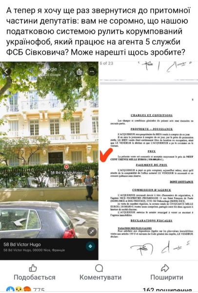 Репортер Сергій Іванов виклав у відкритий доступ відомості про власність сім’ї очільника парламентського комітету з питань фінансів, податків та митної політики Данила Гетманцева у французькому місті Ніцца.